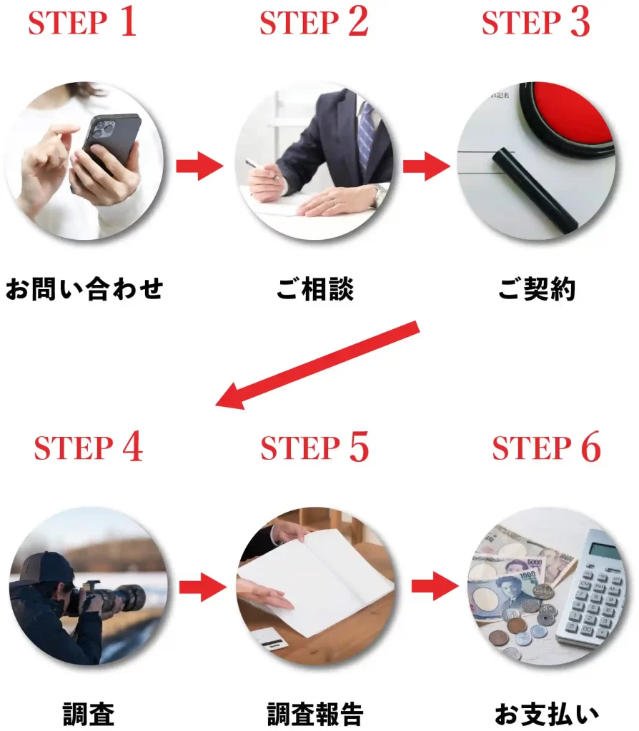 一番気になる料金ですが当社の調査料金は業界最安値水準となっており、「着手金なし」「契約後の追加費用なし」「完全後払い制」となっております。