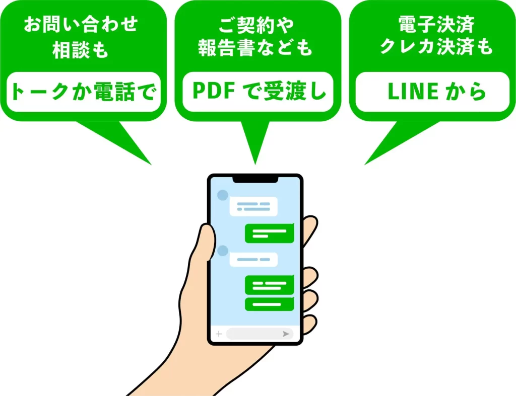 当社のLINE手続きでは「相談」「契約」「報告」をLINE一つで完結できます。